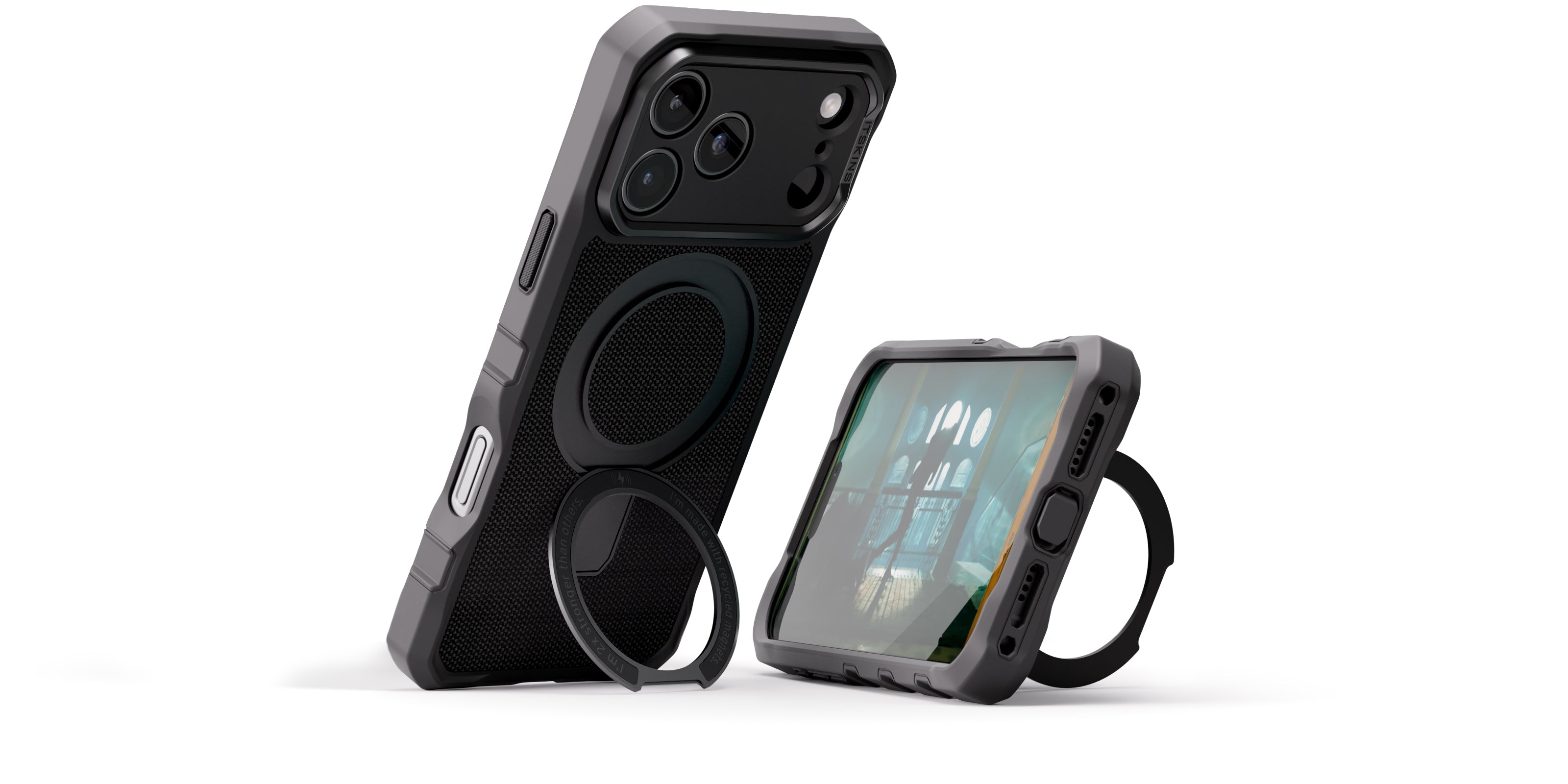Check out the latest innovation from the ITSKINS development team. A phone stand that doubles as a finger loop and is MagSafe compatible!
