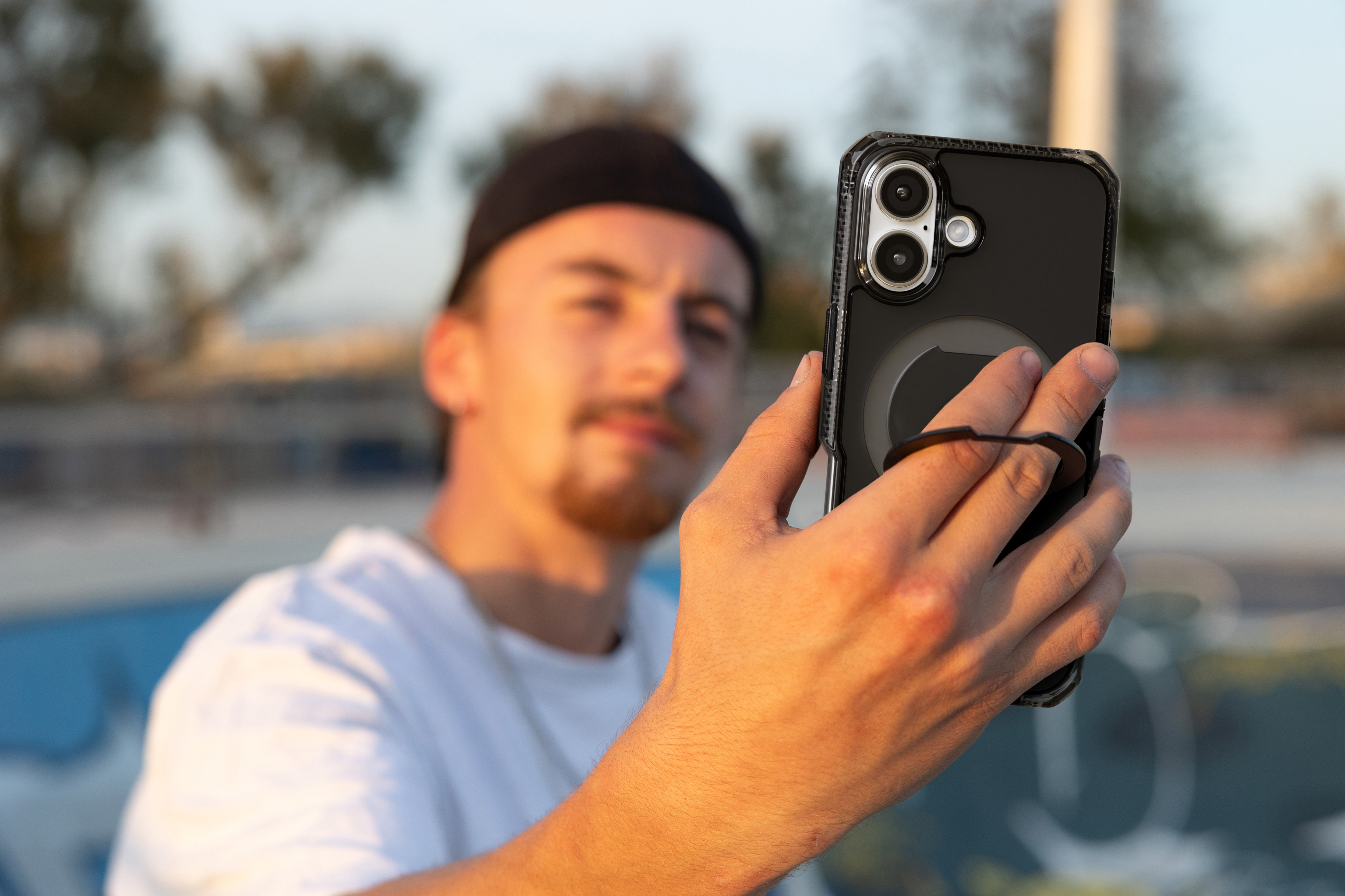 Sustainable product with an enhanced cut out for the new camera control button, eco-friendly design, and drop tested.