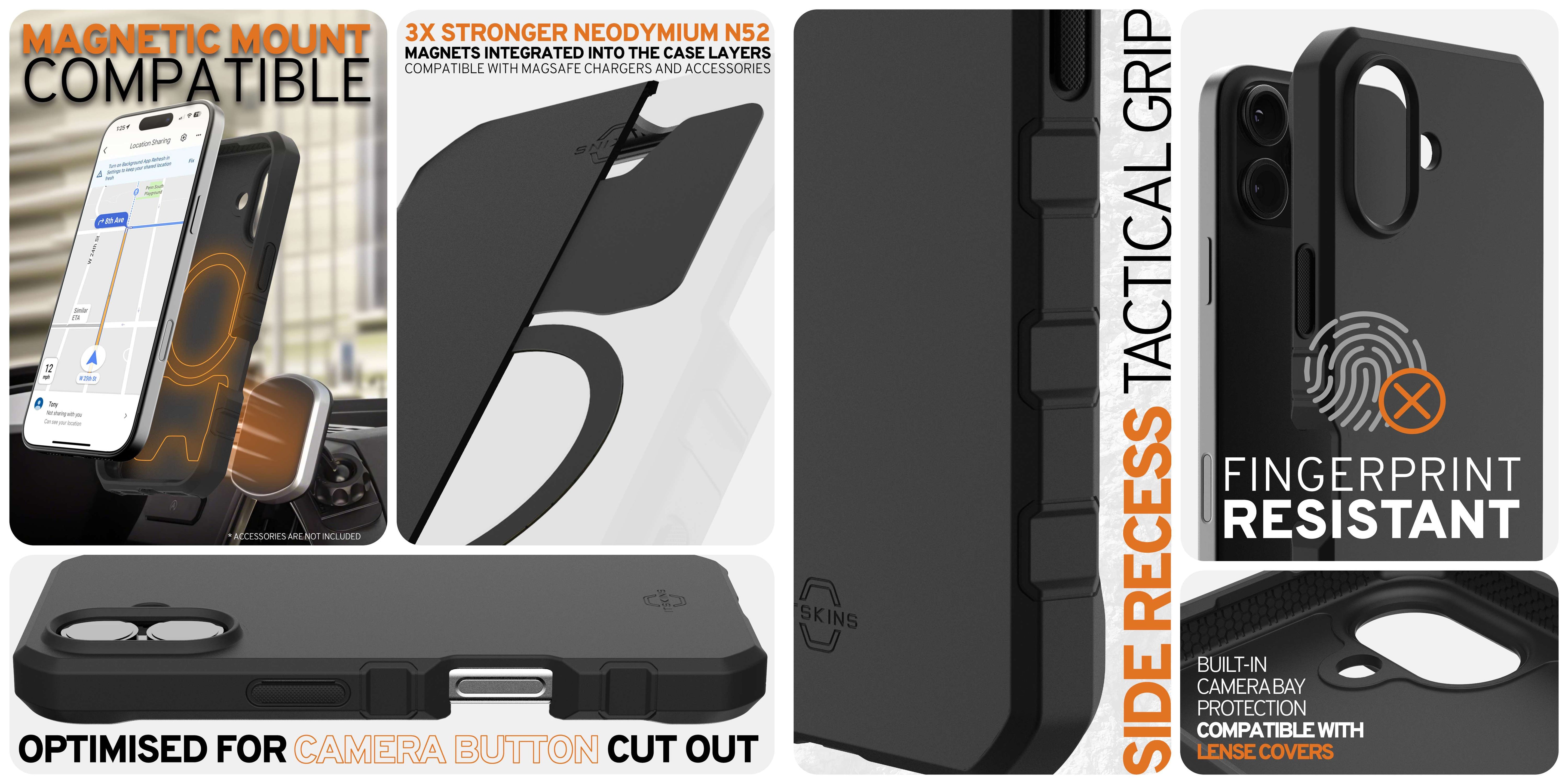 SUPREME R meets MIL-SPECS for military-grade defense, includes a tactical grip for enhanced hand security, and comes with detachable port covers for added protection. Engineered with XXL Air Corners for top-tier impact deflection. Boasts a 3X Stronger MagSafe for maximum attachment strength with accessories.
