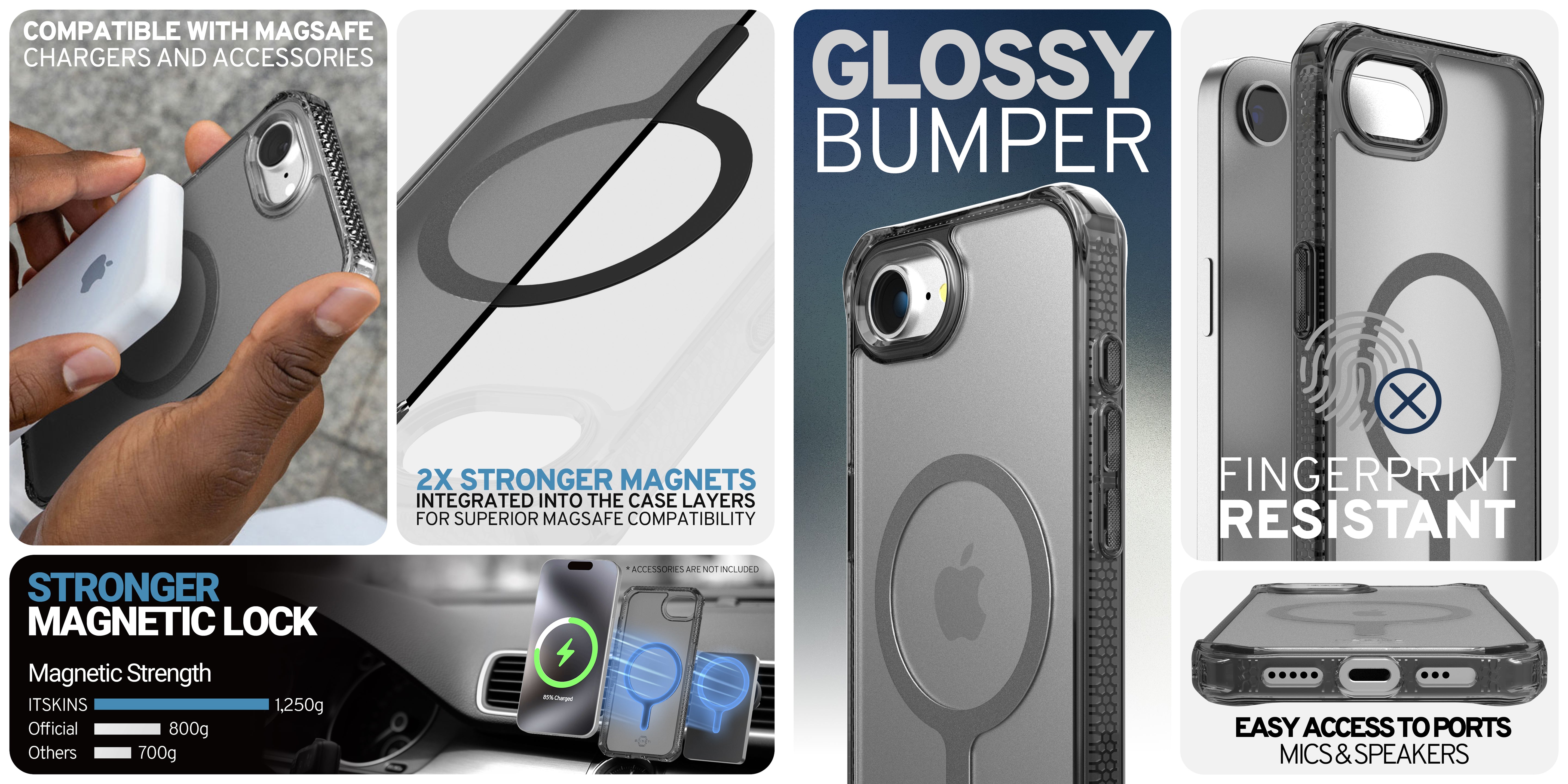 HYBRID R // VAPOR w/ MagSafe® This slim, frosted case has a subtle matte hardback and a glossy perimeter that lets you show off your phone's premium design. It's anti-fingerprint surface keeps your case looking beautiful.