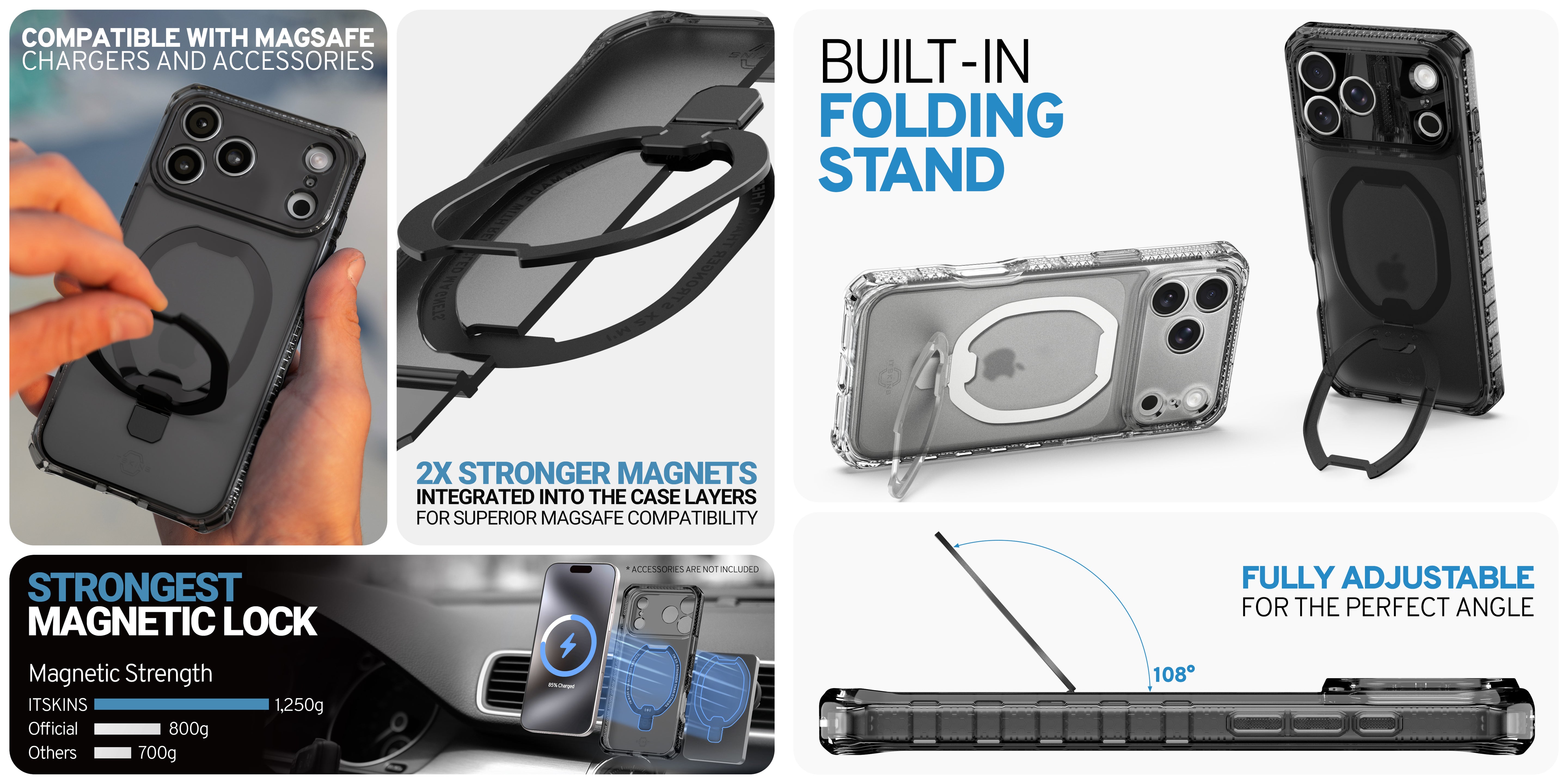 HYBRID_R VAPOR STAND : comes packed with features, like a versatile built-in magnetic ring acting as a stand or holder, and is MagSafe-compatible. Designed to sit flush for ease of pocket use. Showcases a matte frosted hardback with a glossy clear bumper, accentuating your phone's titanium trim. Offers AI-enhanced drop protection up to 3M / 10ft, is eco-friendly with Global Recycled Standard Certification, and includes air-pocket corners, antimicrobial protection, and responsive buttons. Geared for the active lifestyle with a Lifetime Warranty.