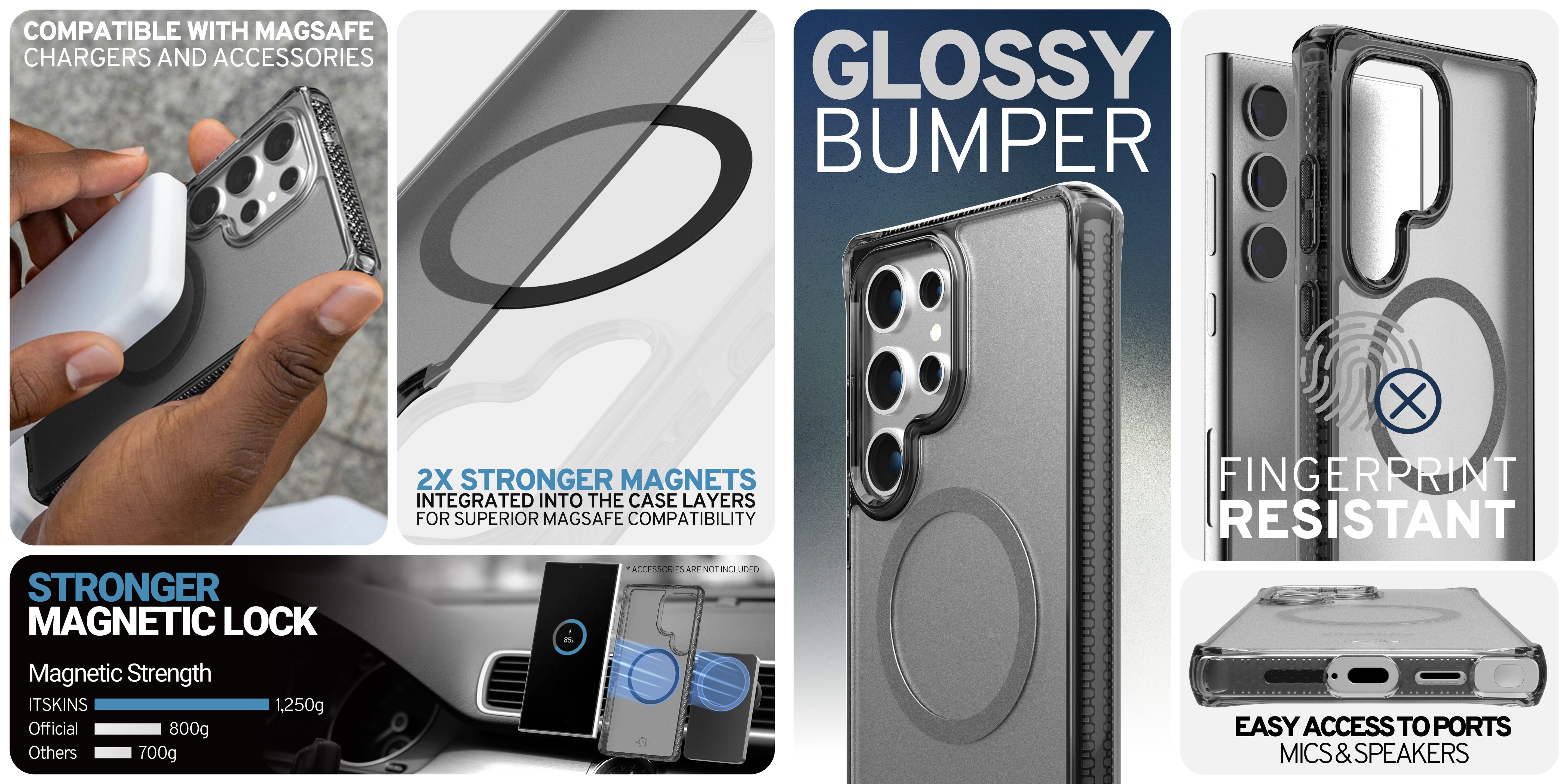 HYBRID R // VAPOR w/ MagSafe® This slim, frosted case has a subtle matte hardback and a glossy perimeter that lets you show off your phone's premium design. It's anti-fingerprint surface keeps your case looking beautiful.